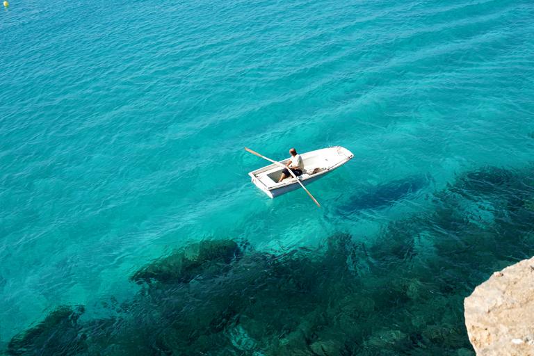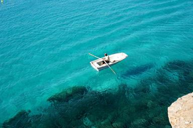 Keywords: sea water fisherman boat turquoise colors summer cliff holidays landscape blue crystal clear waters white formentera nature mediterranean