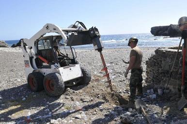Keywords: Seabees working in Guantanamo Bay DVIDS358000.jpg en Petty Officer 1st Class Leonard Kelly left equipment operator uses an auger to dig a hole for the placement of a bollard while Petty Officer 3rd Class Roger Alexander engineer aide guides him at Cable Beach Guantanamo Bay Cuba Jan 13 Both sailors are assigned to Naval Mobile Construction Battalion 28 Shreveport La which is deployed to Guantanamo Bay in support of general improvement engineering construction and project management 2011-01-13 Petty Officer 2nd Class Elisha Dawkins https //www dvidshub net/image/358000 110113-N-+++++-480 2011-01-15 17 52 GUANTANAMO BAY CU PD-USGov-Military-Navy Guantanamo Bay Images from DoD uploaded by Fæ |