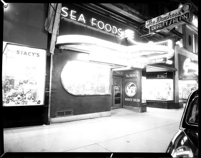 | Keywords: vancouver neon blackandwhite monochrome black and white PHOTO NUMBER:  81206 DESCRIPTION:   Fish & Oyster Bar, Granville Street, Vancouver, BC.  PHOTOGRAPHER: Artray DATE: 1950 SUBJECTS: Restaurants, Neon, Duchess Beauty Salon,  More information on our historical photograph collection: www.vpl.ca/historicalphotos  PHOTO NUMBER:  81206 DESCRIPTION:   Fish & Oyster Bar, Granville Street, Vancouver, BC.  PHOTOGRAPHER: Artray DATE: 1950 SUBJECTS: Restaurants, Neon, Duchess Beauty Salon,  More information on our historical photograph collection: www.vpl.ca/historicalphotos |