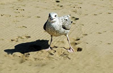Keywords: seagull bird feathers flight wings female beak marine hunter beach sand close-up color background sea england
