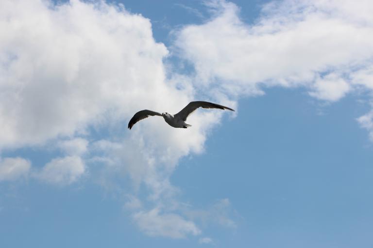 Keywords: seagull clouds sky fly bird sunny air summertime flight animal