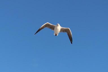 Keywords: seagull flight wing beat sky coast