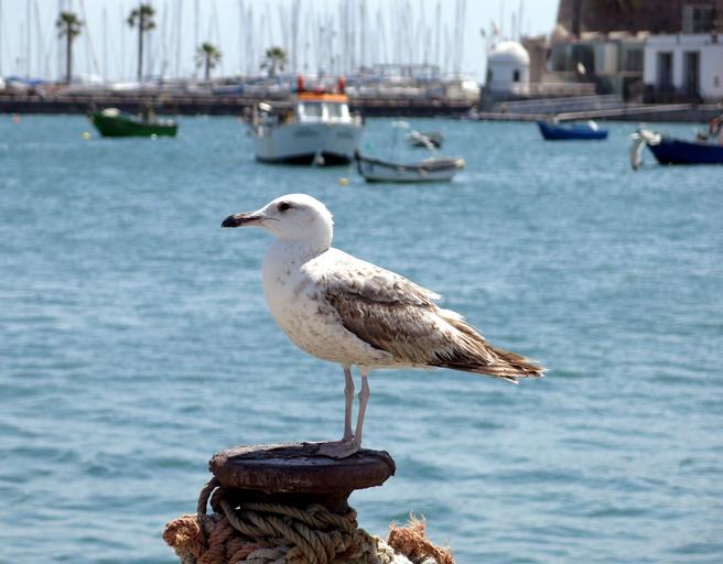 Keywords: seagull sea atlantic cascais portugal boot palm trees port ship bird