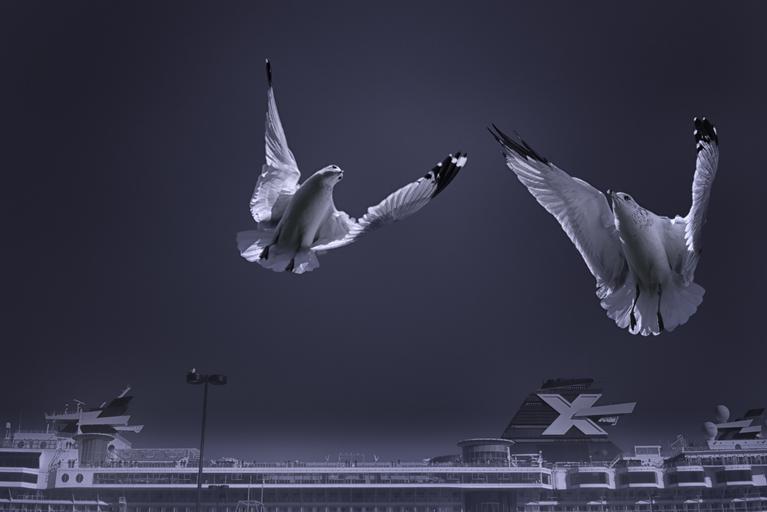 Keywords: seagulls birds animals flight wings ocean ship coast