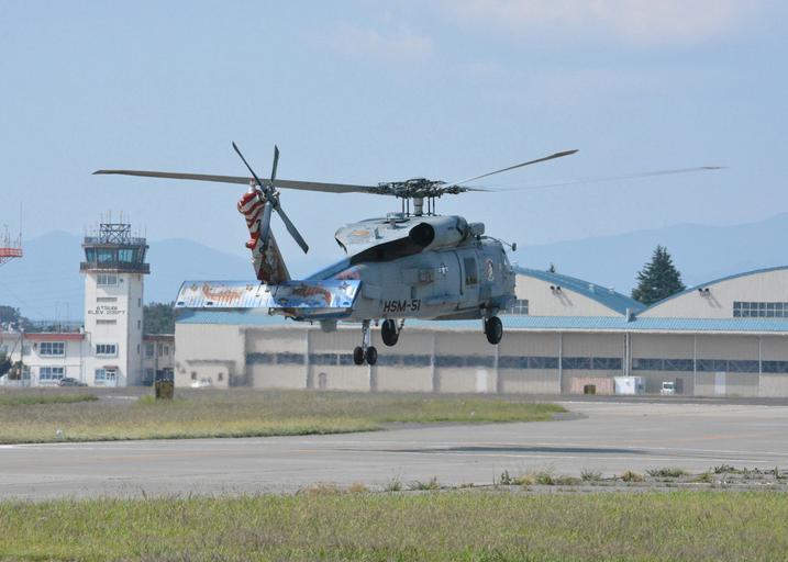 | Keywords: Seahawk takeoff 130921-N-OX321-009.jpg en An MH-60R Seahawk helicopter from Helicopter Maritime Strike Squadron HSM 51 takes off from Naval Air Facility NAF Atsugi en route to the Kanagawa Prefectural Government ™s Big Rescue joint mass casualty and earthquake response drill held at Shonan Kaigan Park The evolution's main Staging Care Unit SCU was established on JMSDF Air Base Atsugi and consisted of emergency support personnel from the surrounding cities Commander Naval Forces Japan and Japan Maritime Self-Defense Force U S Navy photo by Personnel Specialist 2nd Class Kegan E Kay/Released 2014-02-22 Petty Officer 2nd Class Kegan Kay https //www dvidshub net/image/1172390 130921-N-OX321-009 2014-02-22 08 03 ATSUGI JP PD-USGov-Military-Navy MH-60R Seahawk Images from DoD uploaded by Fæ |