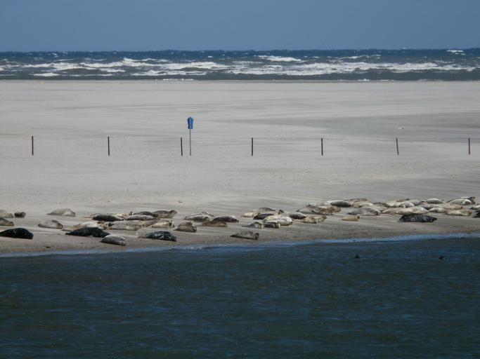 Keywords: seals phoca vitulina crawl north sea baltrum island beach water sea wave