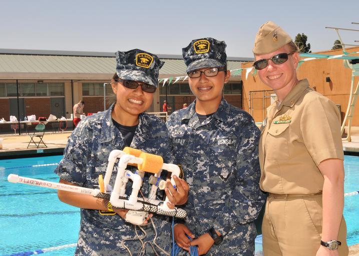 Keywords: SeaPerch lures students to STEM and an underwater world of competition 130427-N-UN340-003.jpg en U S Navy Lt Cmdr Birute Jurjonas right assigned to Space and Naval Warfare Systems Command SPAWAR pictured with Naval Sea Cadets at the San Diego Regional SeaPerch Competition at Grossmont College SeaPerch sponsored by the Office of Naval Research is an innovative underwater robotics program that trains teachers to teach their late elementary through high school students how to build ROVs from low-cost kits Jurjonas was one of several SPAWAR personnel who volunteered as judges timekeepers and in-water assistants at the event As the Navy's Information Dominance Systems Command SPAWAR supports robotics development and strongly encourages all students to explore careers in science technology engineering and mathematics STEM fields U S Navy photo by Rick Naystatt /Released 2013-04-27 Tina Stillions https //www dvidshub net/image/918137 130427-N-UN340-003 2013-04-29 17 38 SAN DIEGO CA US PD-USGov-Military-Navy Space and Naval Warfare Systems Command Office of Naval Research Images from DoD uploaded by Fæ |