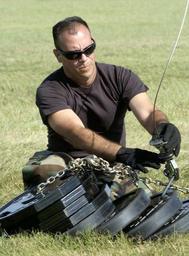 Keywords: Search and rescue missions underway DVIDS10344.jpg en RANDOLPH AIR FORCE BASE Texas -- Senior Airman Ronald Arroyo attaches a 600-pound weight to the rescue cable of an HH-60 Pave Hawk for an operational test prior to its departure on a search and rescue mission over southern Texas Sept 24 Airman Arroyo is a crew chief from the 920th Rescue Wing Patrick Air Force Base Fla U S Air Force photo by Master Sgt Jack Braden 2005-09-24 https //www dvidshub net/image/10344 10344 2005-09-26 20 45 RANDOLPH AIR FORCE BASE TX US PD-USGov Patrick Air Force Base Images from DoD uploaded by Fæ 920th Rescue Wing United States Air Force