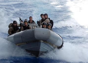 | Keywords: Search and seizure team.jpg en 080318-N-2735T-111 MEDITERRANEAN SEA March 18 2008 Members of the guided-missile cruiser USS San Jacinto CG 56 visit board search and seizure team ride their rigid-hull inflatable boat towards the amphibious transport dock ship USS Nashville LPD 13 during a training exercise Both ships are operating in the U S 6th Fleet area of responsibility U S Navy photo by Mass Communication Specialist 3rd Class Coleman Thompson Released http //www navy mil/view_image asp id 56415 U S Navy photo by Mass Communication Specialist 3rd Class Coleman Thompson 2008-03-18 PD-USGov-Military-Navy Aboard USS San Jacinto CG-56 Search and seizure Rigid-hulled inflatable boats of US Navy Uploaded by raeky |