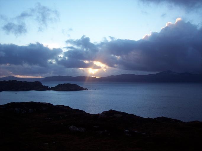 Keywords: seascape nature lake river sea water horizon scenic sunset sunrise dawn dusk scotland tranquil shore relax marine harbor peaceful environment view sky clouds coast south rona coastline