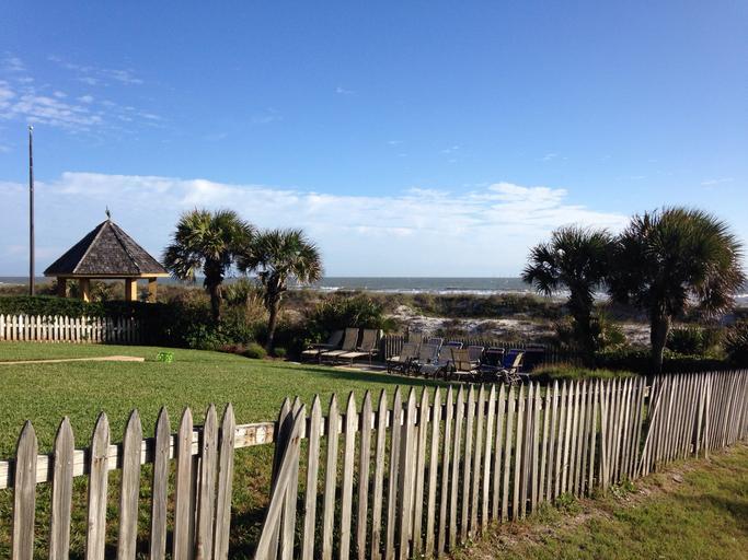 Keywords: seaside coastal yard lawn landscape fence tropical view scenery ocean beachside beach