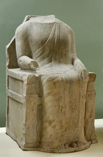 | Keywords: Seated man BM B276.jpg  Statue of dignitary wearing a chiton and a mantle seated on a chair decorated with lotus buds designs Marble made in Miletos ca 560 “550 BC Statue d'un dignitaire portant chiton et manteau assis sur une chaise à décor de boutons de lotus Marbre Milet vers 560-550 av J -C Museum British Museum Main floor room 13 Greek Rome object history credit line accession number GR 1859 12-26 3 Cat Sculpture B 276 Jastrow 2006 other versions 560s BC 550s BC Archaic Greek sculptures Ancient Greek sculptures in the British Museum Sitting men |