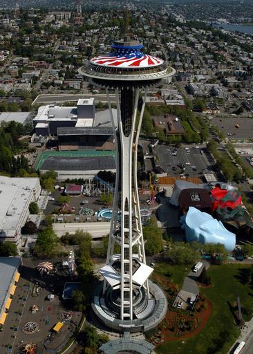 Keywords: seattle washington space needle flag memorial day city cities urban buildings landmark famous skyline cityscape architecture outside streets