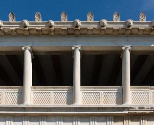 | Keywords: Second floor detail Stoa of Attalus Athens.jpg en Detail of the second floor of the Stoa of Attalus Ancient Agora Athens Greece Stoa d'Attale Ancienne Agora Athènes Grèce 2015-10-26 13 29 15 own Jebulon other versions 37 975189 23 723958 cc-zero Stoa of Attalus Ionic columns in Athens Balconies in Athens Lion heads in art Palmettes Quality images by Jebulon Quality images of Athens QualityImage | ||||