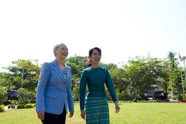 | Keywords: Secretary Clinton walks with Aung San Suu Kyi.jpg en U S Secretary of State Hillary Rodham Clinton visits Daw Aung San Suu Kyi at her house in Rangoon Burma on December 2 2011 State Department photo/ Public Domain 2011-12-02 http //www flickr com/photos/statephotos/6441748991/in/photostream U S Department of State U S Department of State http //flickr com/photos/9364837 N06/6441748991 2011-12-06 22 52 29 United States Government Work PD-USGov Uploaded with UploadWizard Aung San Suu Kyi Visit by Hillary Rodham Clinton to Myanmar in 2011 |