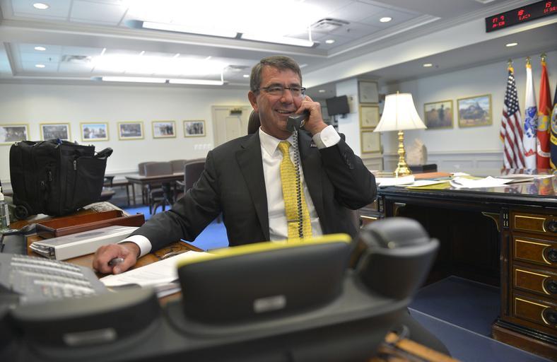 Keywords: Secretary of defense congratulates first women to graduate from US Army Ranger School 150820-D-NI589-054.jpg en Secretary of Defense Ash Carter speaks by phone with Army 1st Lt Shaye Haver and 1st Lt Kristen Griest to congratulate the two for their recent graduation from the rigorous Army Ranger School from his office at the Pentagon Aug 20 2015 Haver and Griest are the first women to successfully complete the course after the Army began allowing women to participate in the elite program DOD Photo by Glenn Fawcett/Released 2015-08-20 Glenn Fawcett https //www dvidshub net/image/2133406 150820-D-NI589-054 2015-08-20 12 59 PENTAGON DC US 3 PD-USGov Ashton Carter Images from DoD uploaded by Fæ Photographs by Glenn Fawcett |