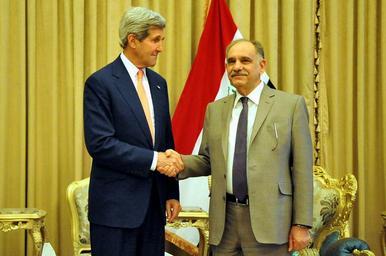 | Keywords: Secretary John Kerry Shakes Hands With Iraqi Deputy Prime Minister al-Mutlaq June 2014.jpg  en U S Secretary of State John Kerry shakes hands with Iraqi Deputy Prime Minister Saleh al-Mutlaq after meeting in Baghdad with Prime Minister Nouri al-Maliki and other national leaders on June 23 2014 State Department photo/ Public Domain 2014-06-23 11 13 21 http //www flickr com/photos/statephotos/14490411714/ U S Department of State 33 330528 44 401245 PD-USGov PD-USGov Uploaded with UploadWizard John Kerry in 2014 People of Iraq |
