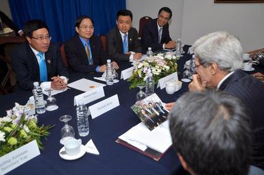 | Keywords: Secretary Kerry Admires Gift From Vietnamese Foreign Minister.jpg  en U S Secretary of State John Kerry looks at a photo of himself and the future Foreign Minister of Vietnam Pham Binh Minh after Minh presented him with a picture of the two taken over 20 years ago at Tufts University in Massachusetts They were reunited for a bilateral meeting between their countries in Bandar Seri Begawa Brunei on July 2 2013 State Department photo 2013-07-02 15 39 34 http //www flickr com/photos/statephotos/9189118599/sizes/o/in/photostream/ U S Department of State U S Department of State http //flickr com/photos/9364837 N06/9189118599 2013-07-02 10 51 46 United States Government Work PD-USGov Uploaded with UploadWizard John Kerry in 2013 John Kerry and Phạm Bình Minh 2013 in Brunei Bandar Seri Begawan Photographs taken on 2013-07-02 July 2013 in Asia Bottled water Men with glasses Men wearing neckties Six men Blue neckties Relations of the United States and Vietnam |