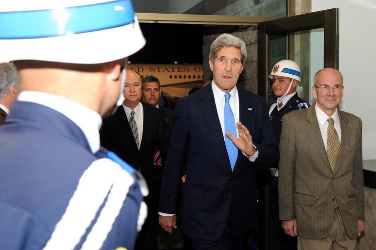 | Keywords: Secretary Kerry Arrives in Bogota, Colombia (2).jpg en U S Secretary of State John Kerry accompanied by U S Ambassador to Colombia Michael McKinley waves to a member of an honor guard as he arrives in Bogota Colombia on August 11 2013 State Department photo/ Public Domain 2013-08-12 00 32 22 http //www flickr com/photos/statephotos/9490396591/sizes/o/in/photostream/ U S Department of State U S Department of State http //flickr com/photos/9364837 N06/9490396591 2013-08-12 07 50 53 United States Government Work PD-USGov Uploaded with UploadWizard John Kerry in 2013 |