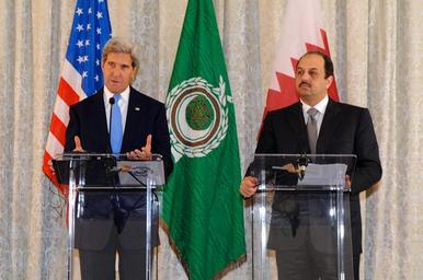 Keywords: Secretary Kerry and Qatari Foreign Minister Al Attiyah Hold a Press Conference.jpg en U S Secretary of State John Kerry and Qatari Foreign Minister Khalid bin Mohamed Al Attiyah speak with reporters during a press conference that followed a meeting of the Ministerial Delegation of the Arab Peace Initiative in Paris France on September 8 2013 State Department photo/ Public Domain 2013-09-08 08 21 38 http //www flickr com/photos/statephotos/9703829194/sizes/o/in/photostream/ U S Department of State U S Department of State http //flickr com/photos/9364837 N06/9703829194 2013-09-08 20 01 17 United States Government Work PD-USGov Uploaded with UploadWizard John Kerry in 2013 Khalid bin Mohammad Al Attiyah |