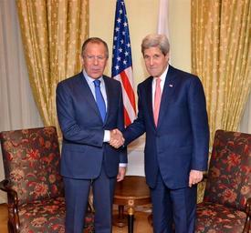 | Keywords: U.S. Secretary of State John Kerry shakes hands with Russian Foreign Minister Sergey Lavrov before the two begin a bilateral meeting amid broader negotiations about the future of Iran's nuclear program. U.S. Secretary of State John Kerry shakes hands with Russian Foreign Minister Sergey Lavrov before the two begin a bilateral meeting amid broader negotiations about the future of Iran's nuclear program. | ||||