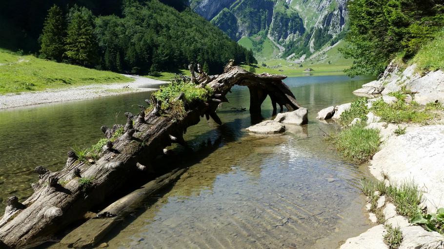 Keywords: seealpsee root switzerland lake nature alpine tree water