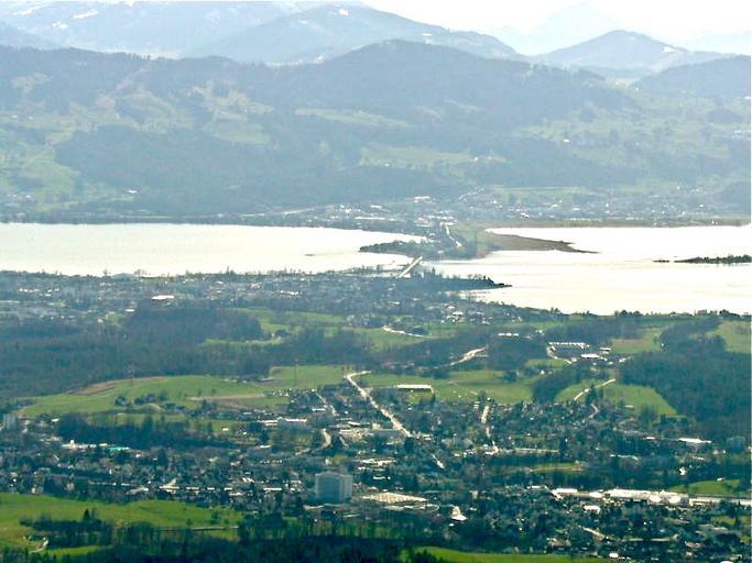 | Keywords: SeedammBachtel2.JPG Seedamm bei Rapperswil-Jona cantons of St Gallen Schwyz and Zurich Switzerland Picture taken from the top of the mountain Bachtel by Peter Berger March 4 2007 2009-05-10 own assumed Parpan05 Seedamm Geography of Rüti Zürichsee at Rapperswil Etzelpass |