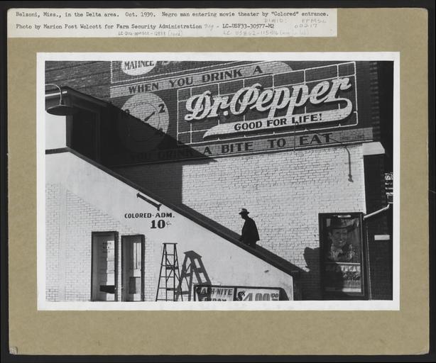 | Keywords: Segregated cinema entrance.jpg African-American patron going in colored entrance of movie house on Saturday afternoon Belzoni Mississippi Delta Mississippi Library of Congresshttp //hdl loc gov/loc pnp/ppmsca 12888 1939-10 Creator Marion Post Wolcott Unrestored version of File Segregated cinema entrance3 jpg PD-USGov Negro going in colored entrance of movie house on Saturday afternoon Belzoni Mississipp by Marion Post Wolcott | ||||