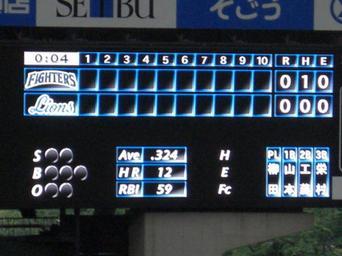 Keywords: Seibu Dome Scoreboard right.jpg en scoreboard of Saitama Seibu Lions No 12 war vs Hokkaido Nippon-Ham Fighters of August 6 2009 ja 2009年8 6日 北海道日 ハムファイターズ対埼玉西武ライオンズ 第12回戦の試合 own Myself 09-08-06 Saitama Seibu Lions Seibu Dome Baseball scoreboards in Japan |