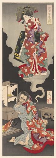 Keywords: Seigen en Sakurahime-Rijksmuseum RP-P-2007-150.jpeg accession number RP-P-2007-150 Tsukioka Yoshitoshi credit line nl Seigen de abt van de Kiyomizudera tempel omhelst de kimono van zijn gestorven courtisane Sakurahime die als geestverschijning op het bovenste blad zichtbaar is Verticaal diptiek Label Line mentioned on object Tsukioka Yoshitoshi 1839 - 1892 1889 kleurenhoutsnede; lijnblok met kleurblokken Collection prenten; Japan collectie blad Height mm 322 blad Width mm 244 exhibition history 2007-2007 Zomertentoonstelling 2007 CODA Cultuur onder Dak Apeldoorn Apeldoorn paper object history Acquisition 2006 object type prent PD-US PD-old Data and photography rights All data and all images made available through the API are either in the public domain or are subject to a CC0 license https //www rijksmuseum nl/en/api/terms-and-conditions-of-use cc-zero place of creation Japan http //www rijksmuseum nl/collectie/RP-P-2007-150 http //hdl handle net/10934/RM0001 COLLECT 440630 handle Seigen en Sakurahime Uploaded with GWToolset Rijksmuseum RP-P-2007-150 http //www rijksmuseum nl/media/assets/RP-P-2007-150 Images uploaded by Fæ Images from the Rijksmuseum Japanese 19th-century prints in the Rijksmuseum Amsterdam |