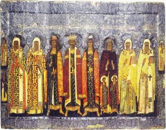 | Keywords: Selected russian saints.jpg ru Икона изб анных усских святых из соб ания ЦАКа осковской духовной академии 1580 http //www mpda ru/data/2010/03/04/1234447343/837_71 jpg author PD-old-100 Uploaded with UploadWizard Church-Archaeological Cabinet |