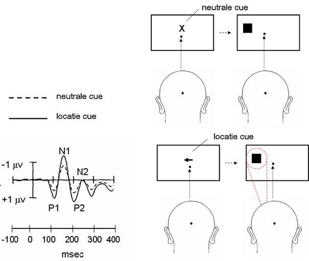 | Keywords: Selectie.PNG Rechts voorbeeld van een visuele selectietaak met neutrale boven en locatie onder cues Een dia met cue wordt steeds gevolgd door een dia met vierkant Links ERPs op vierkanten voorafgegaan door neutrale en locatiecues De vergrote P1- en N1-componenten weerspiegelen het effect van coverte aandacht gesymboliseerd door de rode bundel voor de waargenomen figuur Merk op dat dit effect ook optreedt voor prikkels waarop met niet hoeft te reageren own 2007-01-21 Albert Kok wikipedia nl Albert Kok Original upload log All user names refer to nl wikipedia 2007-01-21 19 34 Albert Kok 788×667×8 51300 bytes <nowiki></nowiki> Charts |