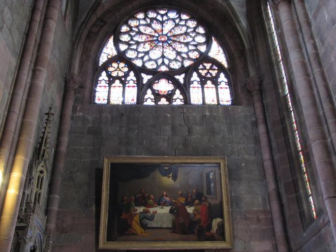 | Keywords: Sélestat StGeorges22.JPG fr Alsace Bas-Rhin Sélestat Eglise gothique Saint-Georges Rosace gothique 1330 Tableau Sainte Cène 1830 own Rh-67 2010 cc-by-sa-3 0 Artwork / Œuvre d'art / Kunstwerk circa 1830 oil canvas cm 280 350 Eglise Saint-Georges Sélestat IM67008870 object history Tableau peint par Georges Antoine Keman offert à la paroisse Saint-Georges peu de temps avant sa mort survenue en 1830 ; il était né à Sélestat en 1765 et avait passé une partie de sa carrière en Grande-Bretagne other versions Ralph Hammann PD-old accession number Interior of Église Saint-Georges de Sélestat Rose window of Église Saint-Georges de Sélestat Rose windows in France interior view Photographs of stained glass windows by Ralph Hammann Church paintings in Bas-Rhin Photographs of Sélestat by Ralph Hammann Taken with Canon PowerShot SX20 IS 19th-century paintings of the Last Supper Paintings of Last Supper in France 19th-century paintings in Alsace 1830s works in Alsace |