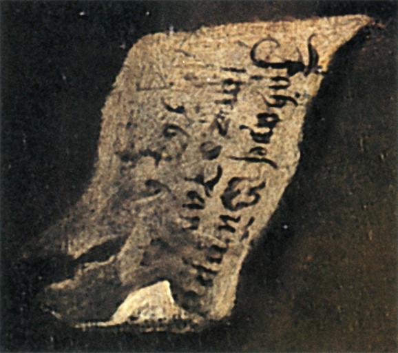 | Keywords: Self-portrait by Johannes Gumpp (detail of inscription).jpg Detail showing inscription Oil on canvas mm 885 590 Johannes Gumpp at age 20 1646 signature/date Uffizi Collezione degli Autoritratti Selected work 19 from Self Portrait Renaissance to Contemporary Anthony Bond Joanna Woodall ISBN 978-1855143579 1646 Creator Johannes Gumpp <gallery> File Self-portrait by Johannes Gumpp jpg Full version </gallery> Self Portrait Renaissance to Contemporary Johannes Gumpp PD-old-100 Self-portraits |