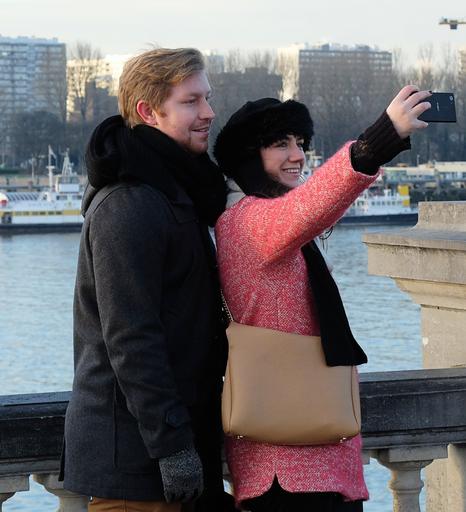 Keywords: selfie schelde antwerp happy people relax carefree young merry luck joy welfare