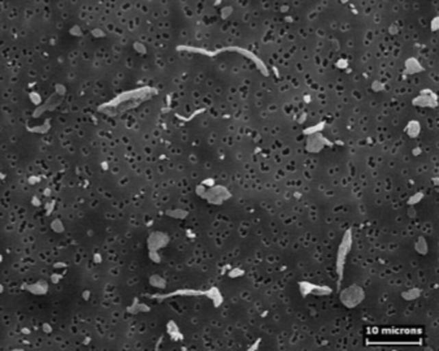| Keywords: SEM flock particles.png en Scanning electron microscope image of airborne respirable dust sample collected in test chamber after agitating a bulk flock sample from a card manufacturing plant 2004 http //onlinelibrary wiley com/doi/10 1002/ajim 20440/abstract Vinicius C S Antao MD MSc PhD Chris A Piacitelli CIH William E Miller MS Germania A Pinheiro MD MSc PhD andKathleen Kreiss MD other versions PD-USGov Uploaded with UploadWizard Swarming National Institute for Occupational Safety and Health |