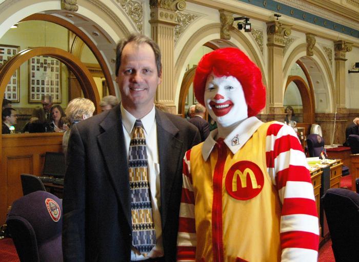 | Keywords: groupshot people indoor Senator Bill Cadman with Ronald McDonald at McDonald's Day at the state Capitol. Learn more at www.ColoradoSenateNews.com. Senator Bill Cadman with Ronald McDonald at McDonald's Day at the state Capitol. Learn more at www.ColoradoSenateNews.com. |