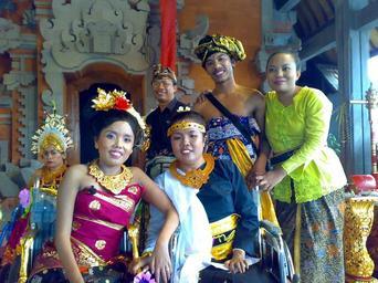 Keywords: Senang Hati-Diah Larasati-Sang Ayu sisters.jpeg Sang Ayu Nyoman Puspa l foreground a member of the en Senang Hati Foundation and Sang Ayu Made Sriani r foreground the treasurer of the en Senang Hati Foundation just after the performance of Diah Larasati A Drama Dance Performance in en Ubud en Bali They are sisters; over Made's left shoulder is her husband didn't get his name All persons depicted are members of Senang Hati except the fellow in blue in back who is likely one of the Balinese politicians who attended Theme is An Information Dissemination Campaign for ˜Sekolah Inklusi ™ PWDs rights to attend regular school PWD Persons With Disabilities These details from a hand-out at the event; and from their website given below Own 2008-04-03 Jack Merridew See also http //www senanghati org/management_and_membership html http //www senanghati org/sang_ayu_made_sriani html Personality rights People of Ubud Senang Hati Foundation Disabled people People in wheelchairs Wheelchair dance |