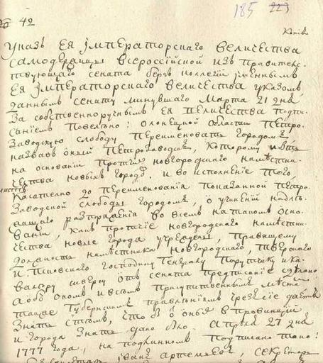 | Keywords: Senat Ukase 27 april 1777.jpg en Ukase of Senat about renaming Petrozavodsk sloboda to city Petrozavodsk ru Указ Сената с объявлением ца ского указа о пе еименовании Пет озаводской слободы го одом Пет озаводском http //www gov karelia ru/Different/300/hist_petr/docum2f shtml Governing Senate of Russian Empire 1777 PD-old-100 PD-RU-exempt documents PD-RusEmpire Ukases of the Russian Empire History of Petrozavodsk | ||||