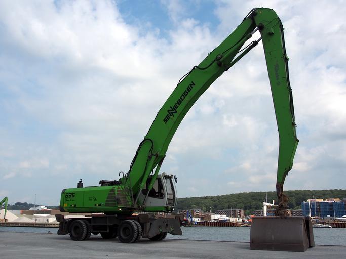 Keywords: Sennebogen 835 crane at VEJLE habor, pic2.JPG Photographed in Vejle Denmark own 2013-06-15 09 56 15 Alf van Beem CC-Zero Vejle harbor Construction equipment photographed by Alf van Beem