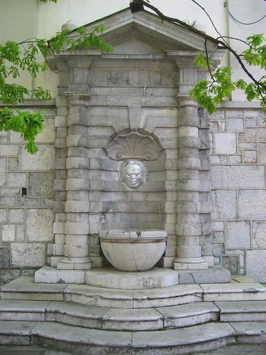 | Keywords: Sentflorjanski vodnjak-Ljubljana.jpg A Baroque Fountain at St Florian's Church in Ljubljana Created in 1780 The inscription between the columns reads ECCE AQUA BIBENDAM CONSVL PROPINAT meaning Look water The mayor offers it for drinking http //zupnija-lj-sv-jakob rkc si/jakob/vodnjak html photo Ziga 21 41 27 April 2006 UTC 2006-04-27 own assumed Žiga Baroque fountains in Ljubljana 1780 sculptures Exterior of St Florian's Church Ljubljana Mascarons in Ljubljana Outside stairs in Ljubljana Latin inscriptions in Ljubljana Columns in Ljubljana Stone stairs in Ljubljana Niches in Ljubljana |