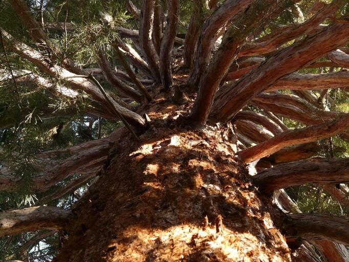 Keywords: sequoia tribe bark large powerful aesthetic upward up conifer tree gnarled
