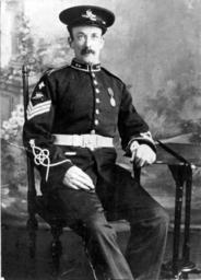 Keywords: SERGEANT ANDREW FOSTER.jpg en Sergeant Andrew Foster 12 Elgin cottages Dysart Fife Scotland Grandson of Donald Mckenzie born Killiemuir Isle of Skye Scotland PAUL KAY FOSTER MACKENZIE Paulm594 2009-06-20 Regiment and Sevice Number Soldiers Died in the Great War 1915 Uniforms of the British Army Black and white portrait photographs of sitting men Skye Sergeants Historical uniforms of the British military |