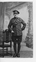 Keywords: first world war firstworldwar ww1 wor life worlife world war one worldwarone military wartime uniform sergeant poole sergeantpoole sepia photograph sepiaphotograph social history socialhistory archives digital image digitalimage north east of england northeastofengland united kingdom unitedkingdom regional faces of the first world war regionalfacesofthefirstworldwar tyne and wear tyneandwear white outline whiteoutline grain mark portrait chair donor's father donorsfather posing standing photographic studio photographicstudio backdrop ornate house ornatehouse block identification number identificationnumber newcastle interesting unusual fascinating pocket button fabric crease moustache cap attentive eye belt boot shine bootlace emblem wor faces: regional faces of the first world war worfacesregionalfacesofthefirstworldwar floor wall leg label tram conductress tramconductress post office postoffice married blackandwhite people monochrome black and white Sepia photograph of donor's father, Sergeant Poole, taken during WW1. He is posing in his uniform at a photograph's studio, with a backdrop of an ornate house (there is a block in the corner of the photo with the number of the scene (or photograph?). Sergeant in the First World War, and met his wife in Newcastle while she was a tram conductress (TWCMS_2006_4145). She later worked in the Post Office, married in 1918 and moved to London. Regional Faces of the First World War. The photograph is from an album relating to the men, women and children from Tyne and Wear who lived, worked or fought during the First World War. Accompanying this photo is the biographical and supporting information that we have about them, but the full story is not always known. Our collections records are not very detailed in some cases. We need your help to fill in the blanks. Do you have any information to add to what is already here? A name? A location? What more can you find out and tell us about their life? If you have some extra information about this photograph, please add your comments, information and any links, images or text. Part of the ‘Wor Life’ project. To find out more please visit www.worlife.org.uk Sepia photograph of donor's father, Sergeant Poole, taken during WW1. He is posing in his uniform at a photograph's studio, with a backdrop of an ornate house (there is a block in the corner of the photo with the number of the scene (or photograph?). Sergeant in the First World War, and met his wife in Newcastle while she was a tram conductress (TWCMS_2006_4145). She later worked in the Post Office, married in 1918 and moved to London. Regional Faces of the First World War. The photograph is from an album relating to the men, women and children from Tyne and Wear who lived, worked or fought during the First World War. Accompanying this photo is the biographical and supporting information that we have about them, but the full story is not always known. Our collections records are not very detailed in some cases. We need your help to fill in the blanks. Do you have any information to add to what is already here? A name? A location? What more can you find out and tell us about their life? If you have some extra information about this photograph, please add your comments, information and any links, images or text. Part of the ‘Wor Life’ project. To find out more please visit www.worlife.org.uk