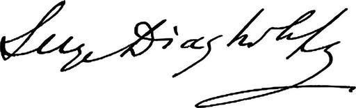 Keywords: Sergei Diaghilev signature.svg Signature of Sergei Diaghilev http //www rrauction com/bidtracker_detail cfm IN 868 RR Auction 1927-06-24 Sergei Diaghilev <br> <small>Created in vector format by Scewing</small> PD-old Signatures of musicians |