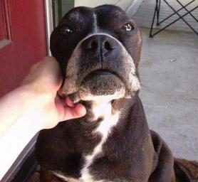 Keywords: Serious Lady.JPG en Miss Oreo Shot With A Vivitar S830 16 1MP 2013-07-09 own Fancibaer cc-zero Uploaded with UploadWizard Staffordshire Bull Terrier Black-and-white dogs People caressing dogs Facial expressions of dogs