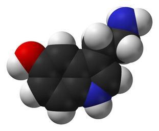 Keywords: Serotonin-Spartan-HF-based-on-xtal-3D-sf-web.png Space-filling model of the serotonin molecule C<sub>10</sub>H<sub>12</sub>N<sub>2</sub>O Colour code Carbon C grey-black Hydrogen H white Nitrogen N blue Oxygen O red Structure based on that found in the salt serotonin hydrogen oxalate determined by X-ray crystallography in http //dx doi org/10 3891/acta chem scand 32a-0267 Acta Chem Scand 1978 32a 267-270 Model manipulated in http //www crystalmaker com/ CrystalMaker 8 3 The structure of the serotonin cation from the above crystal structure was opened in http //www wavefun com/products/macintosh/Student/mac_student html Spartan Student 4 1 one hydrogen atom on the RNH<sub>3</sub><sup>+</sup> group was deleted yielding the neutral serotonin molecule Its structure was then refined with Hartree-Fock level of theory and the 3-21G basis set Image generated in http //accelrys com/products/discovery-studio/visualization/discovery-studio-visualizer html Accelrys DS Visualizer Own 2011-03-13 Ben Mills Benjah-bmm27 Images by Ben Mills Serotonin |