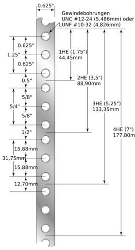| Keywords: Server rack rail dimensions de.svg rack unit showing how typical rack units 1U through 4U are distributed among the mounting holes This is the german version with metric dimensions http //commons wikimedia org/wiki/File Server_rack_rail_dimensions svg Sakurambo darkking3 2007-08-06 File Server rack rail dimensions svg english version <br /> File Server rack rail dimensions-FR svg french version Cc-zero IEC standards Servers Computer hardware 19 -Racks | ||||