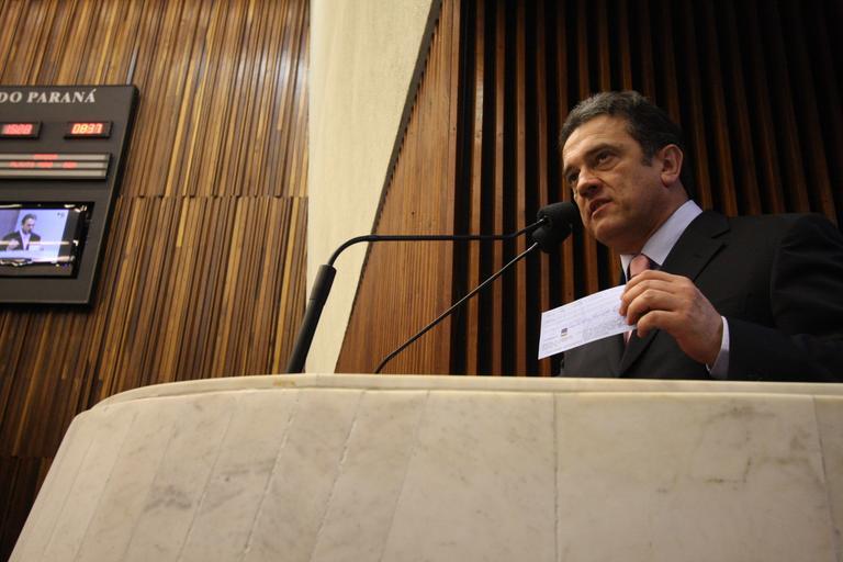 Keywords: Deputado Plauto Miró (DEM) com o cheque que será devolvido ao Governo do Estado / Foto Nani Gois (uso do crédito obrigatório) sessão 1608