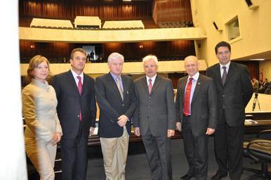 Keywords: Deputada Rose Litro (PSDB), Deputado Plauto Miró (DEM), deputado Valdir nRossoni (PSDB), chefe da casa civil Durval Amaral, deputado Ademar Traiano e deputado Cleiton Kielse/ Foto: Maria de Freitas (uso do crédito obrigatório) sessão